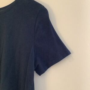 Wheeee! What a tee! Soft navy blue cotton, slight boat neck, and a swing cut for loose, easy wear!