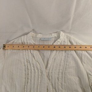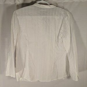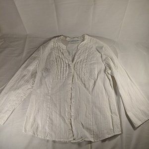 JH Collectibles Petite White Blouse Button-up Shirt V-neck 3/4 Sleeves Peasant M
