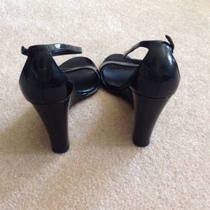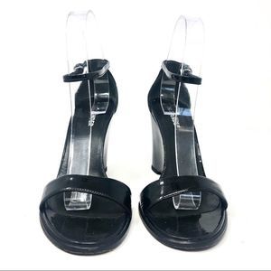 JILL Sander Black Patent Leather Wedge Sandals 8