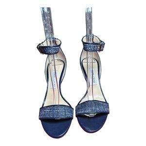 JIMMY CHOO EDINA METALIC TWEED SANDAL IN NAVY GLITTER (SZ 39/9)