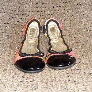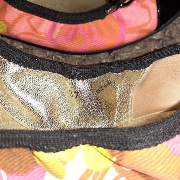 JIMMY CHOO-Wallach-Floral Pattern Ballet-Black Patent Cap Toe-Sz 37-Excellent