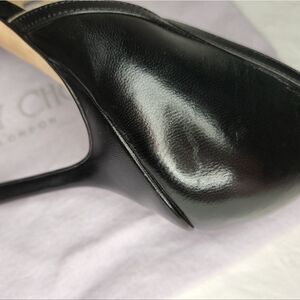 Elegant Art Deco peakaboo cutout black leather high heel stilleto pumps, by Jimmy Choo.