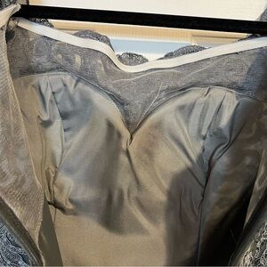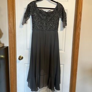 Lace Chiffon from JJ House, Women’s Ruffled High Low, Steel Grey Dress, Worn Once and Drycleaned, Size 8, please see measurements.