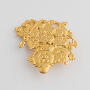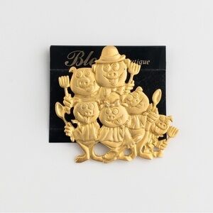 JJ Jonette Brooch Pin Whimsical Pig Family Reunion Sunday Dinner Gold Tone NWT