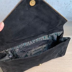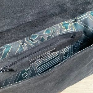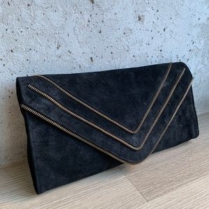 When a clutch is this simple, it needs something to make it stand out. JJ Winters did just the right thing by adding three rows of decorative zippers. They popped against the black soft suede background. The repeating zippers make a bold statement and add a modern feel to the clutch at the same time.