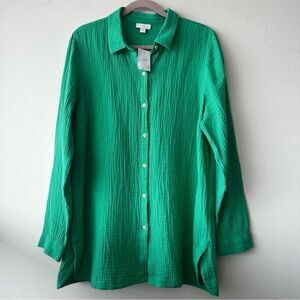 J. Jill Cotton-Gauze Split-Hem Tunic in green