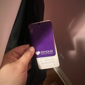 This stunning black gown by JJs House features an elegant asymmetrical design with a ruched bodice and a flowing floor-length skirt. The sleeveless dress showcases a unique one-shoulder style with a sweetheart neckline, perfect for making a statement at weddings, proms, or cocktail events. Its dramatic draping adds a touch of sophistication and movement to the overall look.