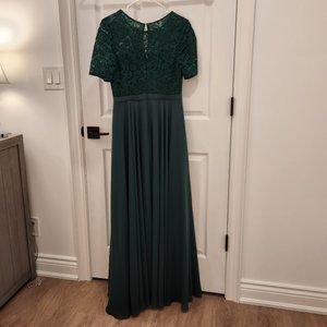 JJ's House Dark Green A-line Scoop Floor-Length Chiffon Lace Bridesmaid Dress