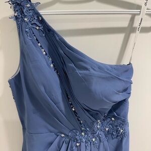 JJ’s House Dusty blue Blue One-Shoulder Prom Dress