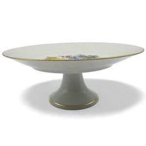 This exquisite JKW Bavaria pedestal cake stand exudes timeless elegance with its intricate floral design and luxurious gold trim.
