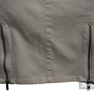 White JLO by Jennifer Lopez midi skirt. 2 front zippers that open and 2 front snaps.