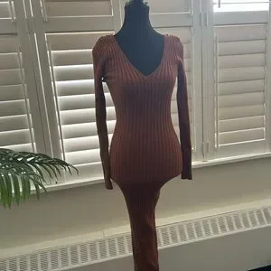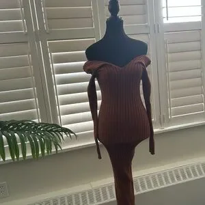 Stylish brown off-shoulder ribbed dress. Perfect for any occasion. Worn once.