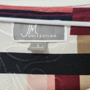 This tunic from JM Collection showcases a bold black and white graphic design, offering a relaxed fit for ultimate comfort. Its tunic length and eye-catching pattern make it a versatile piece for both casual and chic occasions.