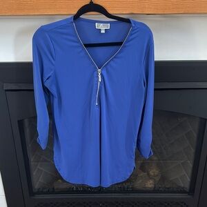 JM Collection Blue 3/4 Sleeve Zippered Blouse