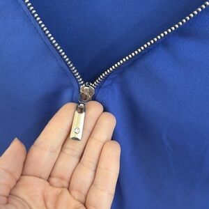 Add a pop of color to your wardrobe with this chic blouse from JM Collection. Featuring a bold, vibrant blue hue and a stylish zippered front, this top is both modern and versatile. The 3/4 sleeves add an elegant touch, making it perfect for both casual outings and dressier occasions.