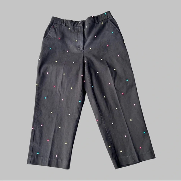 JM Collection Embroidered Multicolor Polka Dot Capri Pants