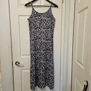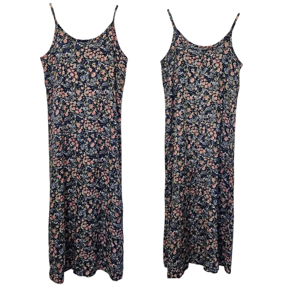Vintage 90s charming dress with a vibrant micro floral design. Perfect for any occasion. Simple easy pullover spaghetti strap lightweight dress. Great for layering classic wardrobe staple versatile