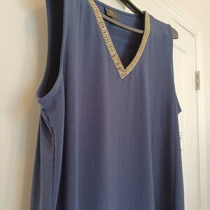 JM Embellished Tunic Blue V Neck Sleeveless OS XL NWT