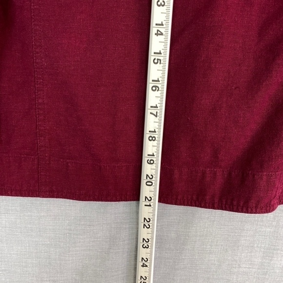 JM Jennifer Moore Linen Blend Shirt Womens 12 Top Wine Red Pockets Button Down