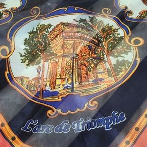 J.Mico Sancho Souvenir de Paris vintage, large scarf. 100% polyester. It features the famous landmarks in Paris.