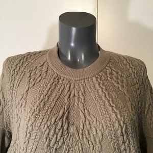 Unique textured knit wool sweater with batwing sleeves in a neutral tan colour.