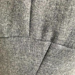Uniquely designed wool vest with huge pockets as part of the napkin hem.