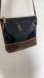 Joanel natural nappa leather small cross body bag. Soft leather. Two tone brown and black leather with cream colour zipper and piping detail. Zip top. Fabric lining with zipper pocket inside. Made in Argentina.