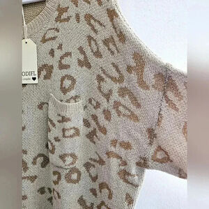 Jodifl Animal Print Boxy Oversized Folded Sleeve Knitted Sweater/ Blouse Sz M