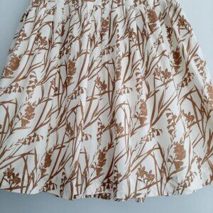 • Pleated a-line skirt in white with brown botanical flower print. Fully lined with side zip closure.