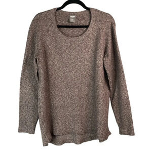 JOE FRESH Active Side Slit Knit Sweater Maroon Brown Marled Crewneck Stretch M