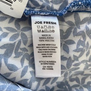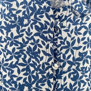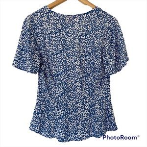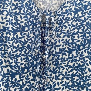 JOE FRESH BLUE/WHITE FLORAL PEPLUM TOP/BLOUSE WITH TIE AND BUTTONS DETAILS, XS
