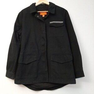 JOE FRESH | Cotton Canvas Utility Shacket Full-Zip Jacket Black Sz M