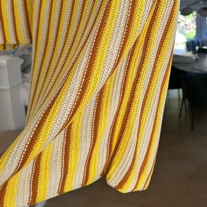 Vibrant knit tank with multicolor stripes and matching midi tube skirt. Features yellow, brown, and cream tones. Never worn.