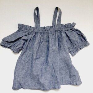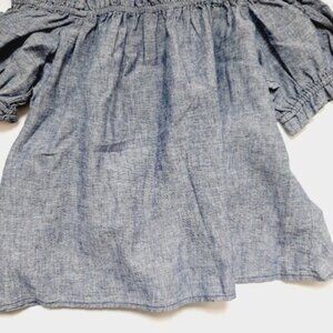 JOE FRESH Off Shoulder Short Sleeve Chambray Blue Top Sz S