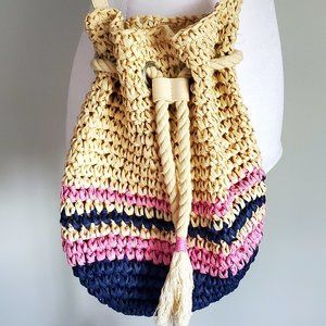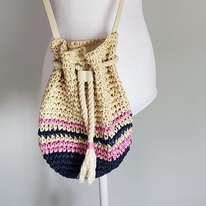 JOE FRESH Raffia Crossbody Bucket Bag Rope Pull Tie Beach Festival Travel Light