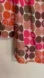 This gorgeous translucent blouse showcases a playful polka dot pattern in vibrant pink and orange shades. Add in the brown dots and it feels very retro. Features dual “pearl” (matte white plastic) button closure at neck and cuff. Beautiful lightweight fabric.