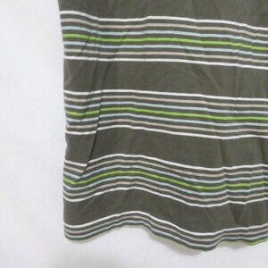 This stylish polo shirt features a classic fit with a modern twist of horizontal stripes in shades of green and white
