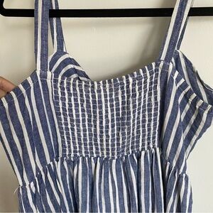 Joe Fresh Midi Linen Blend Front Know Striped Dress in Blue and White • M Medium