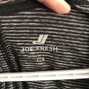JOE Fresh size Large Grey/Black striped, scoop neck t-shirt