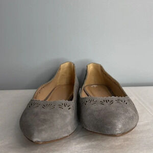 Ladies grey Joe’s Jeans pointy toe laser cut ballet flats.