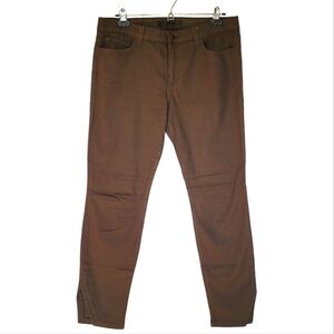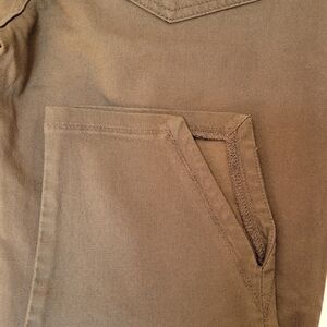 These dark army green jeans have stretch and a decorative hem at the ankle!