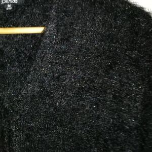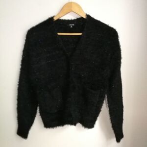 JOE'S Winter Black V Neck Fuzzy Cropped Warm Cardigan Size Medium NWT
