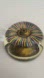 Please see photos for approximate measurements. 3.5" across bottom, 2" tall.
