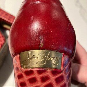JOHN FLUEVOG Sz 9 Let Me Walk My Dreams Croc Skin Design U Shaped Heel Shoes