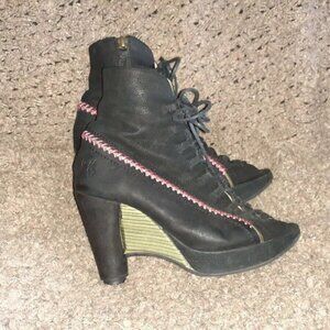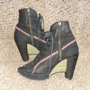 JOHN FLUEVOG-WRITES Angelou-Black Nubuck Leather-Peep-Toe-SZ 7-Excellent