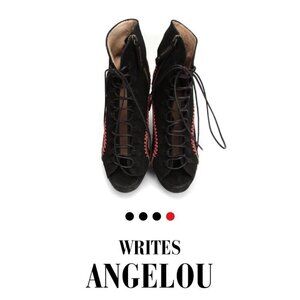The lace-up, open-toed Angelou bootie was John's tribute to author, poet, and Civil Rights activist Maya Angelou, who, in true Fluevogian spirit, walked unwaveringly forward in the woman's liberation movement.