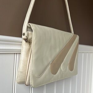 JOHN HORT Cream & Tan VINTAGE Retro Art Deco Leather Shoulder Bag or Clutch