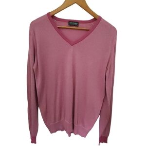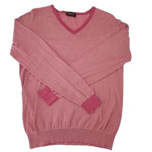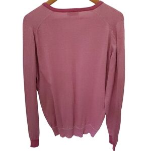JOHN SMEDLEY Sea Island Cotton sweater V neck striped pink medium made in UK