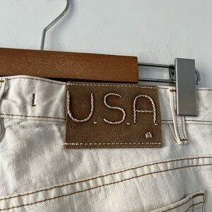 JOHN VARVATOS - Authentic Fit Contrasting Stitching Cream Straight Leg Jeans