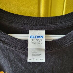 The product is a men's 2XL black T-shirt featuring the Johnny Reid Revival Live 2018 Canadian Tour . Dates and Cities are printed on the back of the shirt. Made of cotton and machine washable, this regular fit shirt has short sleeves and is branded by Gildan. With a music theme, this 2-sided shirt is ideal for fans of Johnny Reid and is a comfortable and easy-care clothing piece. Designed in Honduras, this T-shirt is a must-have for any music enthusiast looking to show their support for Johnny Reid's tour.